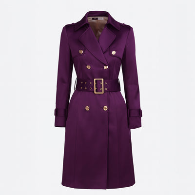 Luxury Handcrafted Duchess Silk Trench Coat - Royal Purple Tailored Designer Coat