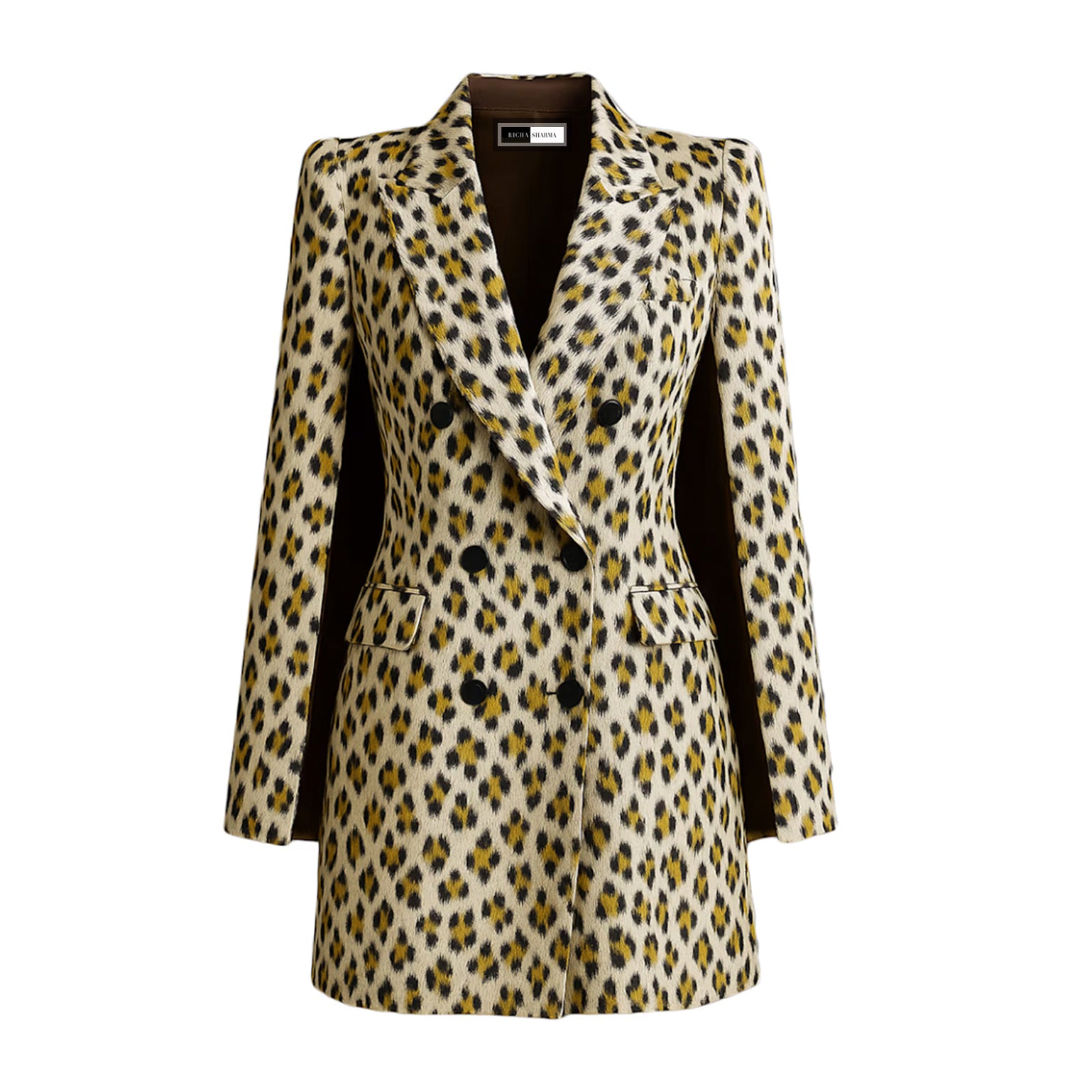 Make a bold yet refined statement with this handcrafted leopard print blazer dress, meticulously tailored to perfection for a sharp, sculpted silhouette. Designed with a classic double-breasted front, structured lapels, and a flattering fitted shape, this piece blends timeless tailoring with modern edge.