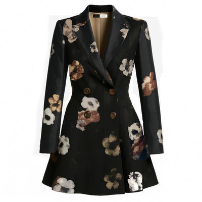 Luxury Slow Fashion Tailored Black Floral Blazer Dress