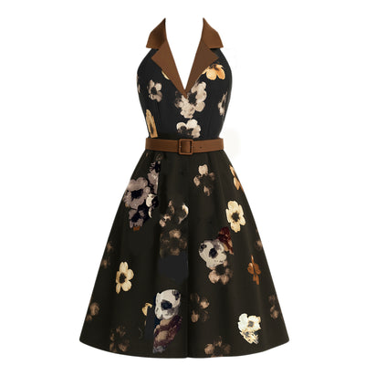 Floral Halter Blazer Dress with Belt - Elegant Tailored Midi Dress