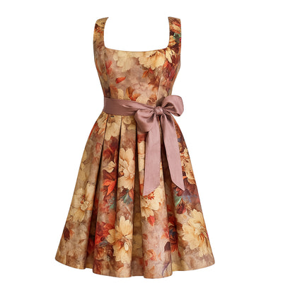 Handcrafted Floral Silk Dress in Bronze Silk - Sustainable Luxury Occasionwear